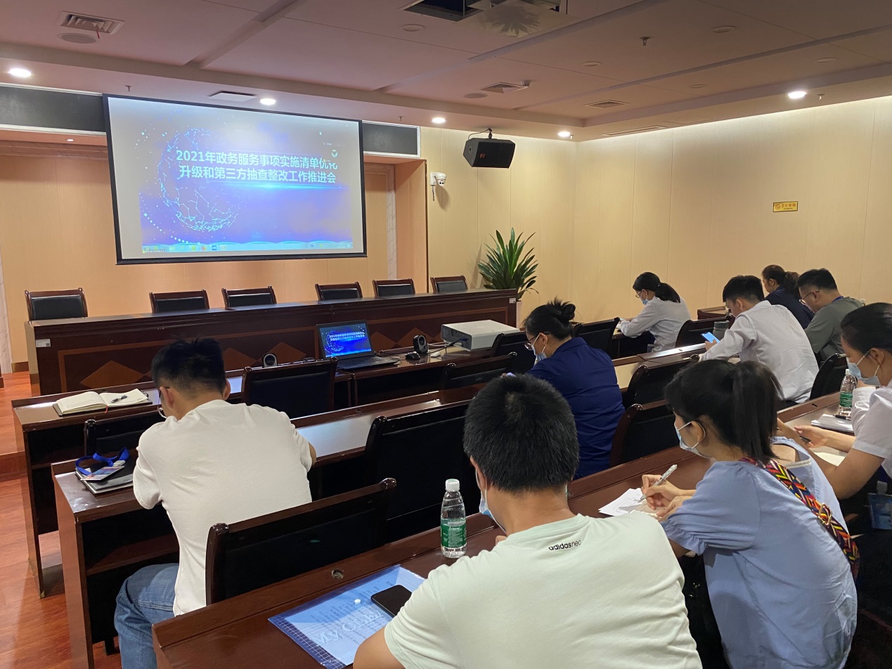 会议首先以视频方式听取自治区大数据局重点解读2021年度省级政府一体化政务服务能力(政务服务“好差评”)第三方调查评估办事指南相关指标、2021年政务服务事项实施清单优化升级内容以及通报自治区政务服务事项实施清单第一轮抽查情况,同时对一体化平台事项管理系统操作及2021年政务服务事项实施清单第三方抽查整改内容进行了培训。