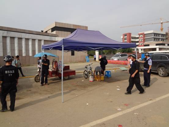 9月6日下午16时,市执法局柳东分局40余名城管执法队员整齐着装,在官塘市容中队队长盘小凤的带领下,分别对铁道职业学院、城市技术职业学院以及二职校等院校周边的流动摊点进行了集中整治。