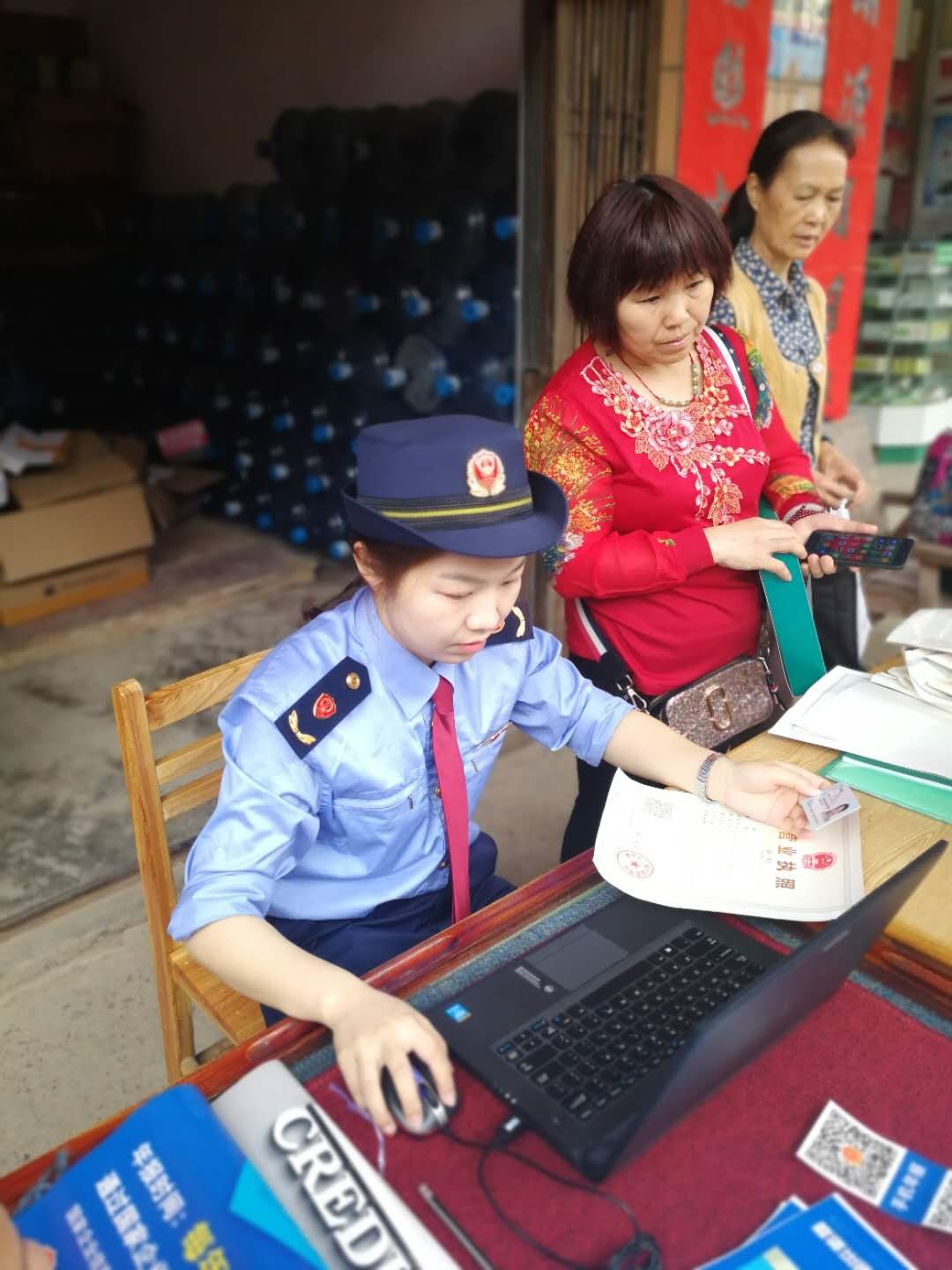 此前,柳东工商分局官塘工商所已多次到辖区内洛埠镇张贴宣传板报、发放宣传资料,开展前期宣传工作。12日上午,工作人员在人流密集的洛埠镇市场旁设立了年报指导办理点,现场指导业户办理年报工作,手把手教他们利用手机等移动端在国家企业信用信息公示系统网进行年报操作。同时,工作人员走街入铺,通过一对一服务的方式指导辖区内有影响力的重点经营户填报,以点带面辐射周边,督促其他业户主动学习报送年报,强化辖区内经营户自主年报意识与诚信经营意识。