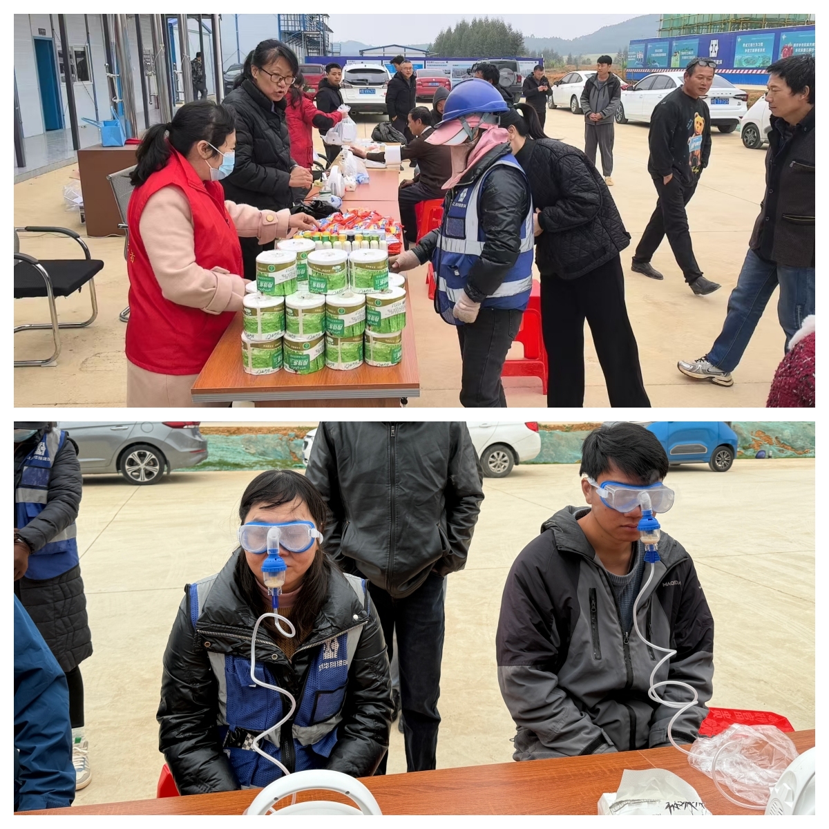 活动现场,工作人员准备了纸巾、洗衣粉、洗发水等生活用品,传递爱心问候;志愿者细致地为大家测量血压,提供健康咨询。针对一线务工人员长期户外作业、用眼疲劳的问题,现场设置了眼鼻雾化疗程服务点,通过专业设备为其缓解眼干、眼涩等不适,受到广泛欢迎。
