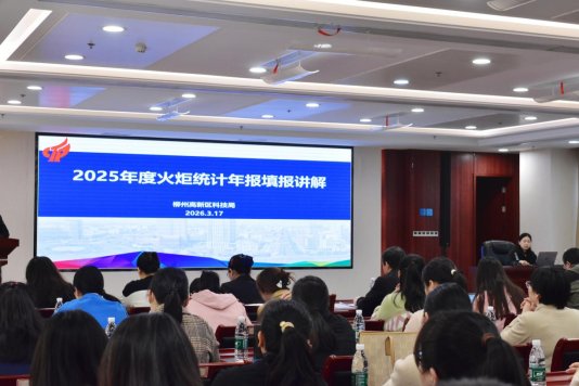 为全面贯彻落实党的二十大和二十届历次全会精神,深入落实习近平总书记关于国家高新区发展的重要指示和对广西工作的重要指示精神,保障年度火炬统计工作高质量推进,柳州高新区科技局于2026年3月17日组织召开2025年度火炬统计工作培训会议。培训采用“线上+线下”相结合的方式同步开展,此次培训会聚焦痛点、精准发力,切实破解企业填报难题,助力企业提升统计工作规范化水平。
