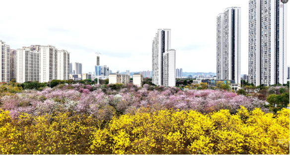 春风路过柳东的街角,唤醒了两样颜色。黄花风铃木与紫荆花循着暖意悄然绽放,点染出春天的炽烈与温柔。